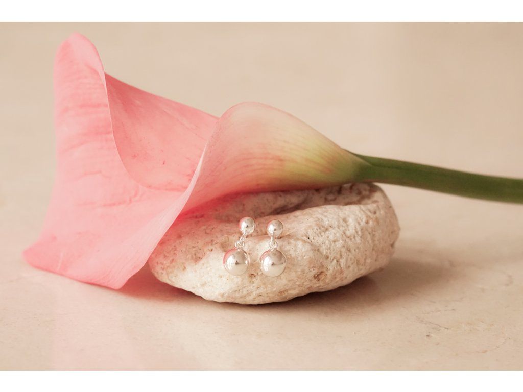 Náušnice sestávají z 5 mm těla s očkem na puzetu a závěsné 8 mm kuličky.
