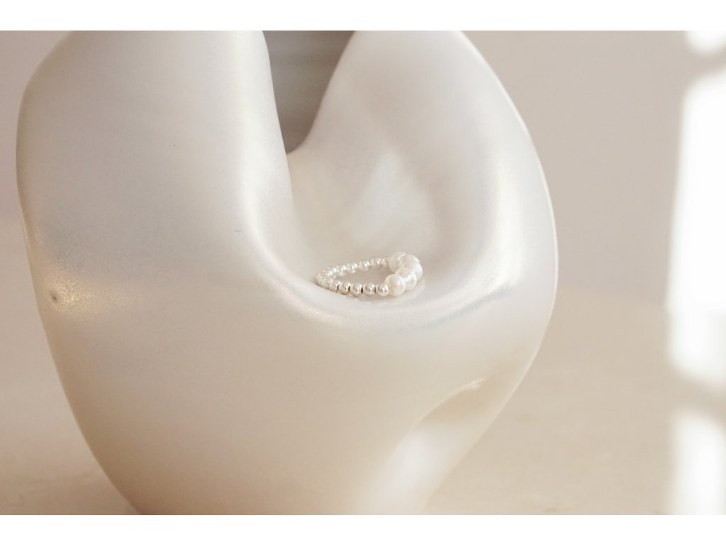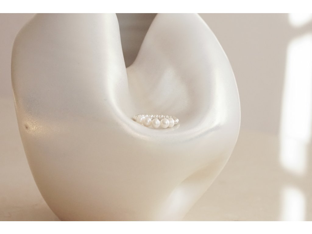 Soft prstýnek ze stříbrných Ag 925/1000 korálků o velikosti jednotlivých komponent 3 mm je doplněn tmavými říčními perlami v kvalitě AA a o průměru 4-5 mm.