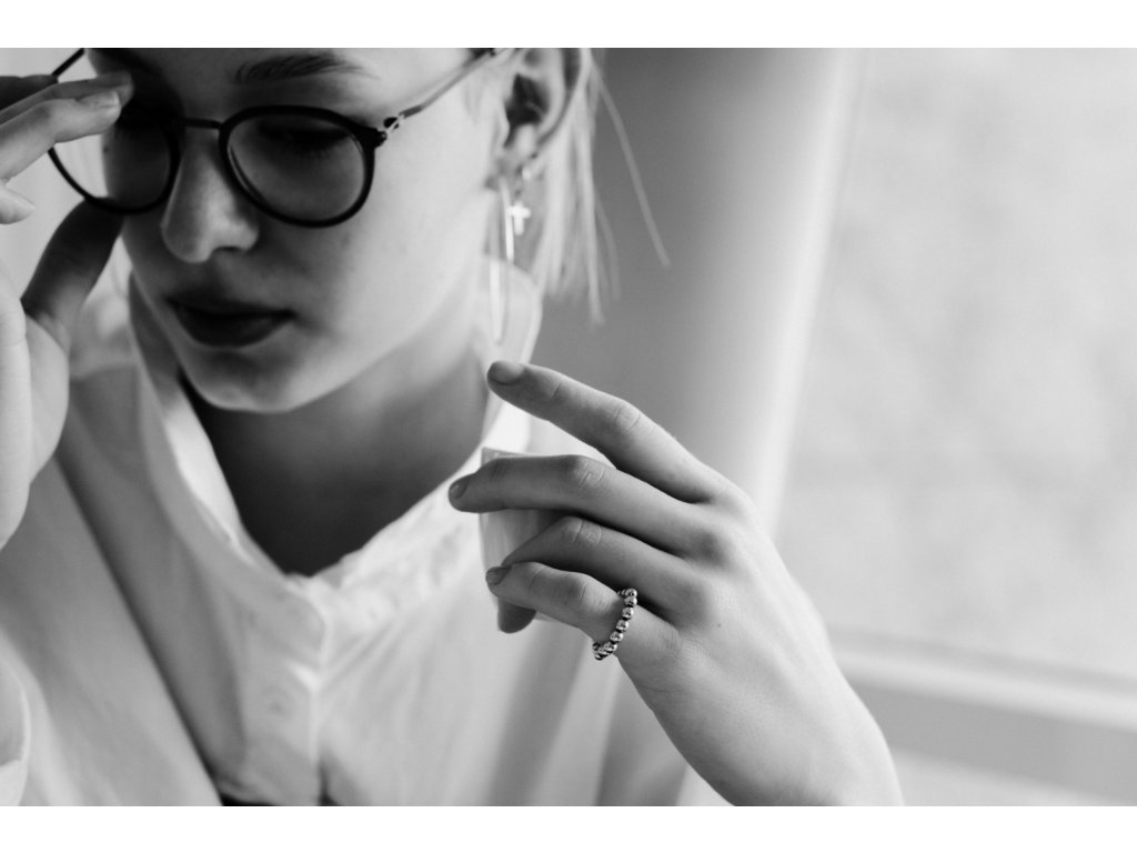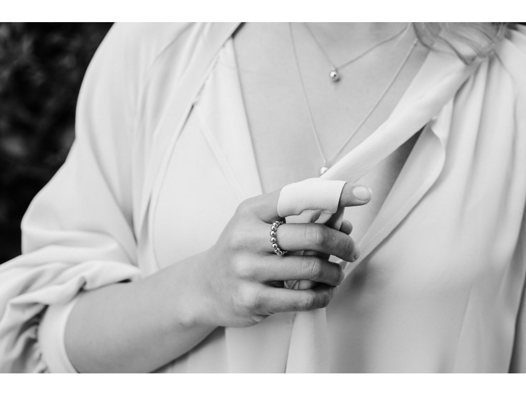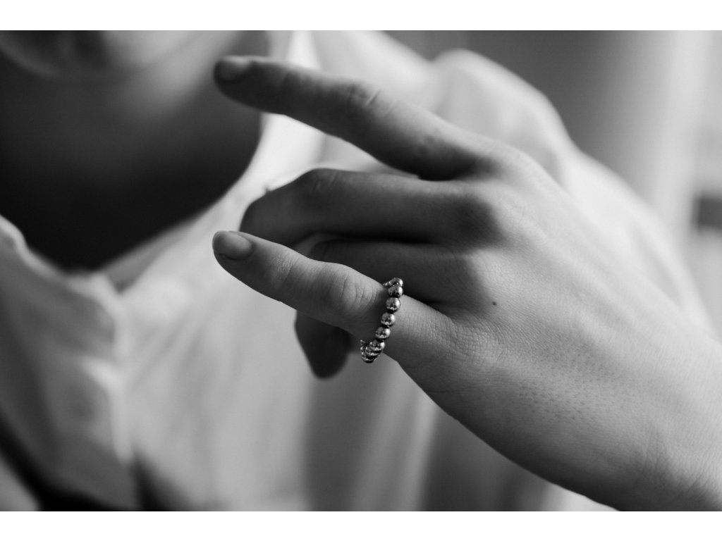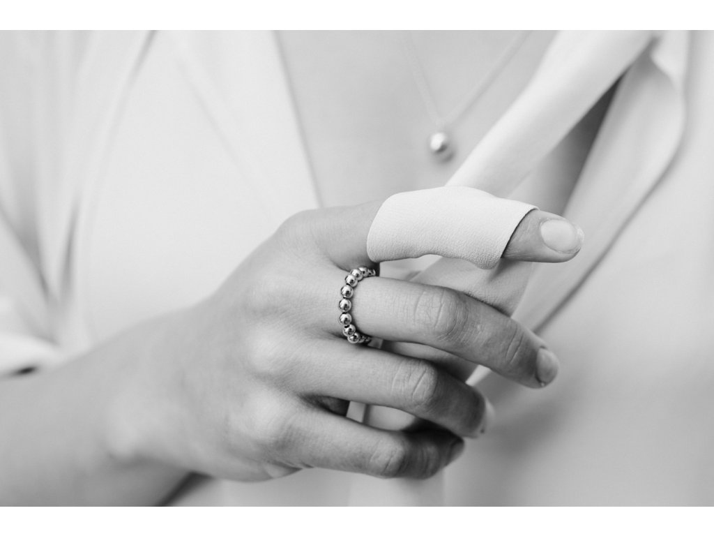 Prstýnek DOTS 4 je sestaven ze stříbrných komponent o velikosti jednotlivých korálků 4 mm a rytosti Ag 925/1000.