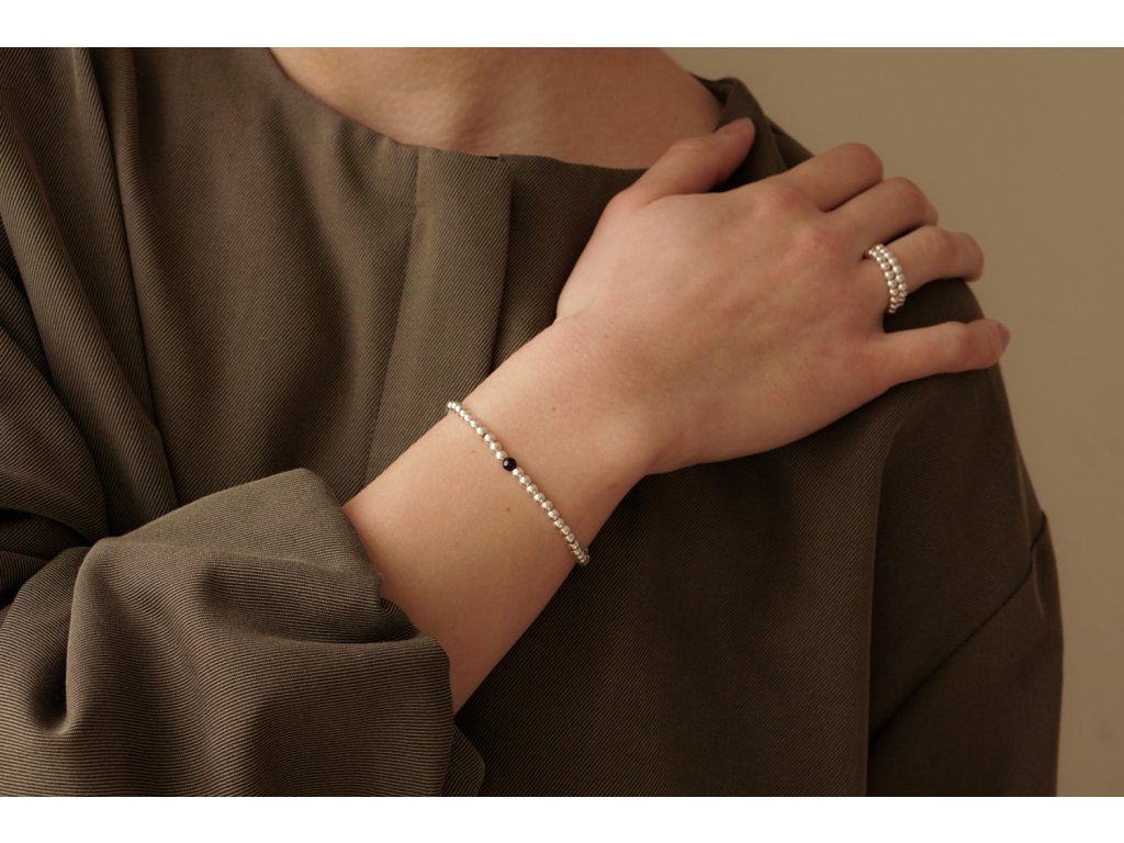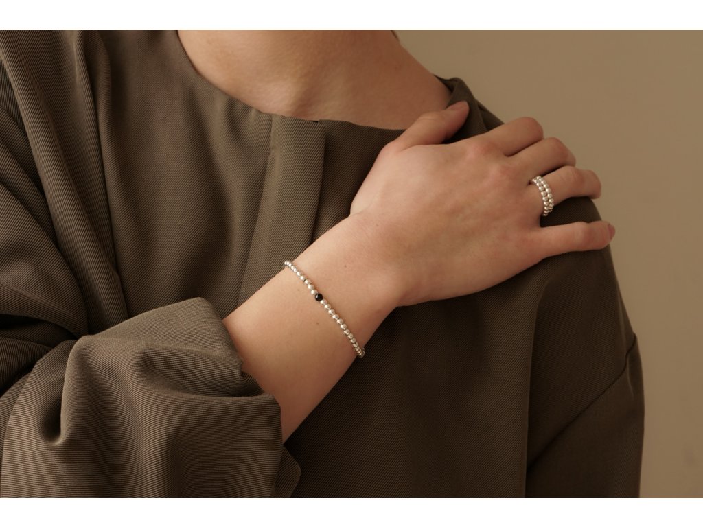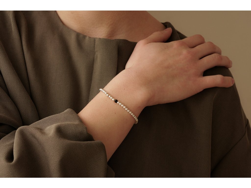 Náramek DOTS COLOURS spinel je sestaven ze stříbrných komponent o velikosti 3 mm a ryzosti Ag 925/1000. Šperk je doplněn fazetovaným spinelem o průměru 4 mm.