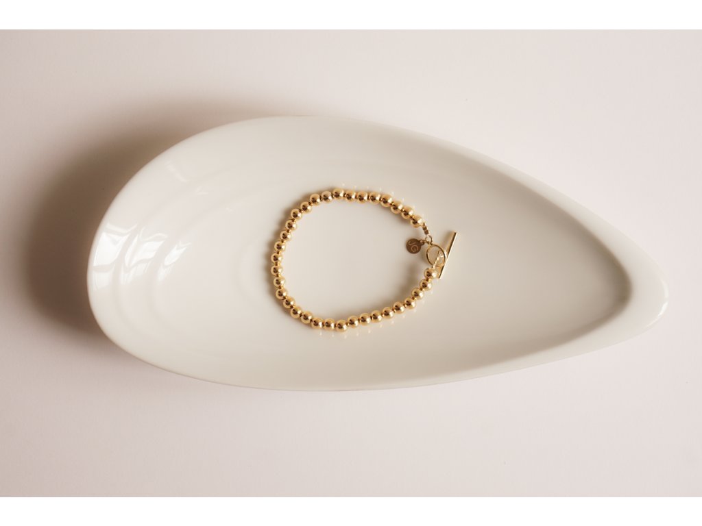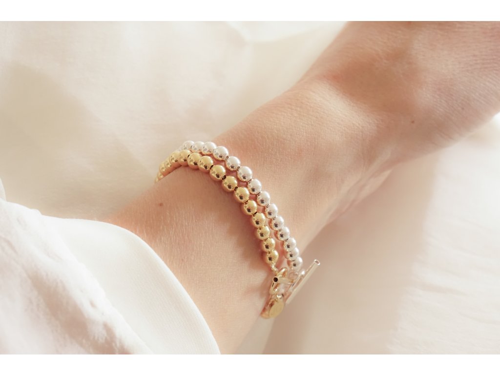 DOTS GOLD náramek navazuje na kolekci DOTS, která sestávala ze stříbrných korálků d o t s o menším průměru. Plynulé navázání na starší kolekci a zvětšení korálků d o t s je symbolem růstu a dospívání. Je tedy možné, že už jste dospěli a toužíte po větším šperku : ) Tedy, nový náramek je vytvořen z pozlacených stříbrných 5 mm velkých korálků a americké záponky o ryzosti Ag 925/Au 585. Velikost náramku si zvolte XS/S 18 cm nebo M/L 20 cm.