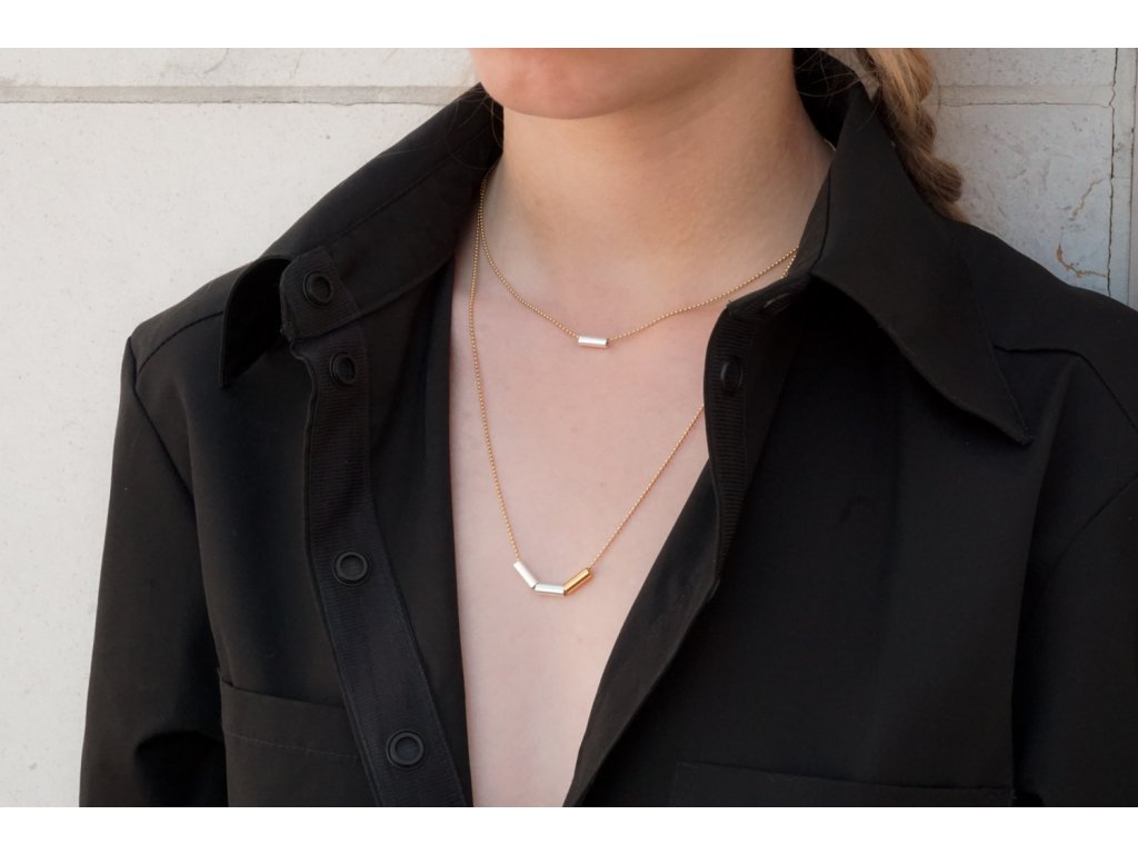 LINE mikrodots I navazuje na kolekci mikrodots a LINE. Spojení obou kolekcí bylo jen otázkou času. Kuličkový řetízek o ryzosti Ag 925 je v délce 42 cm s pozlacenou stříbrnou trubičkou Ag 925/ Au 585 dlouhou 0,9 cm. Šperk je opatřen logem značky JarryG.