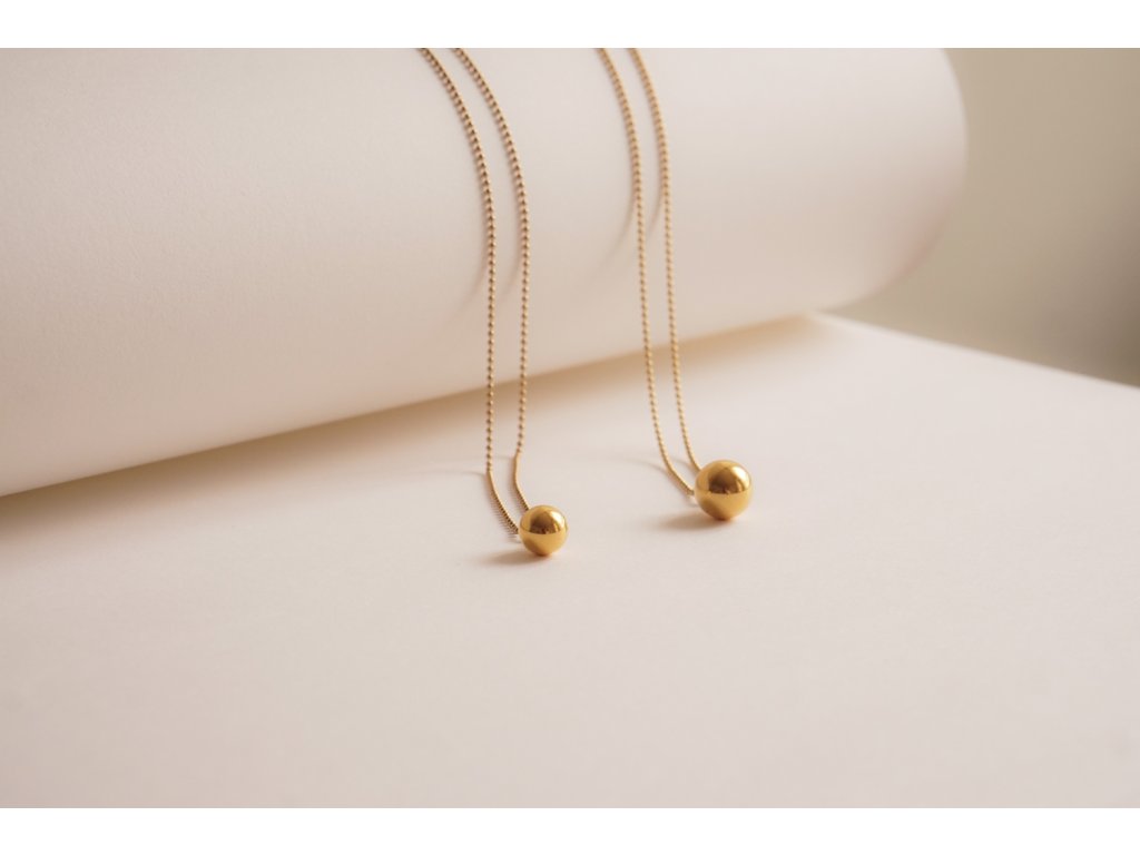 Řetízky jsou zhotoveny ve dvou délkách 42 cm s DOT přívěsem o průměru 6 mm a 55 cm s DOT kuličkou o průměru 8 mm.