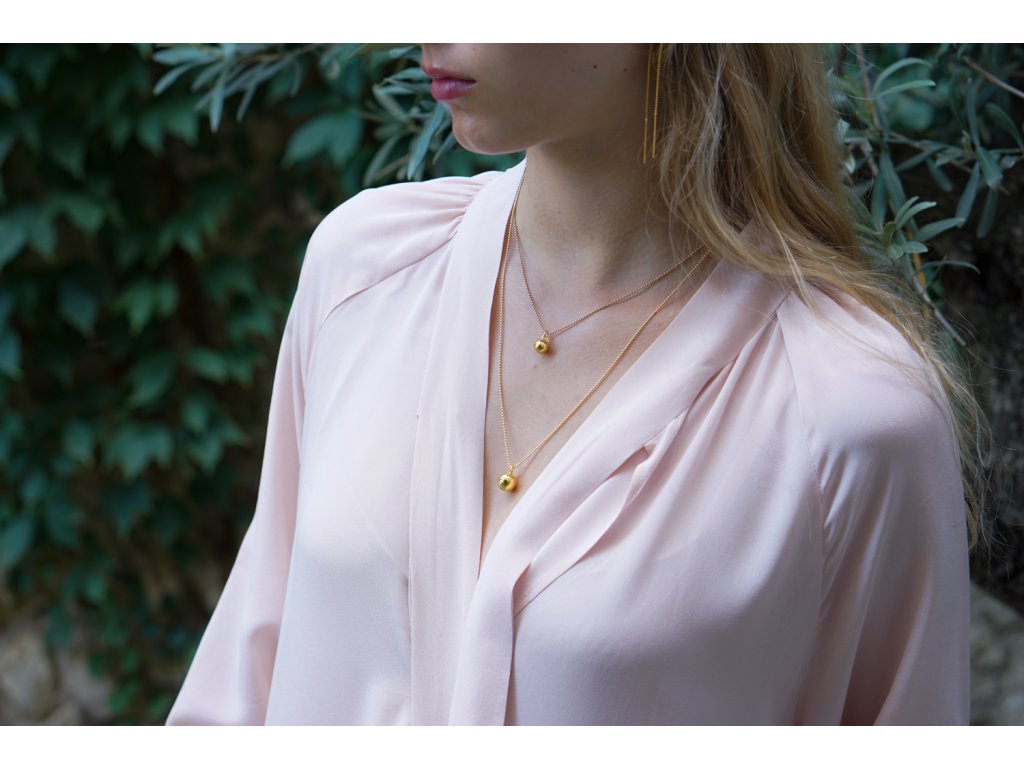 Řetízek MIKRODOTS s kuličkou DOT doplňuje kolekci šperků DOTS, která sestává z náramků, prstýnků a také nově náušnic DOT LONG.