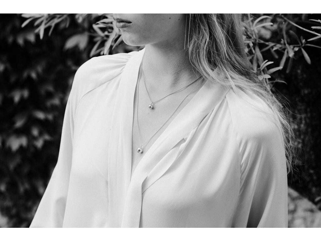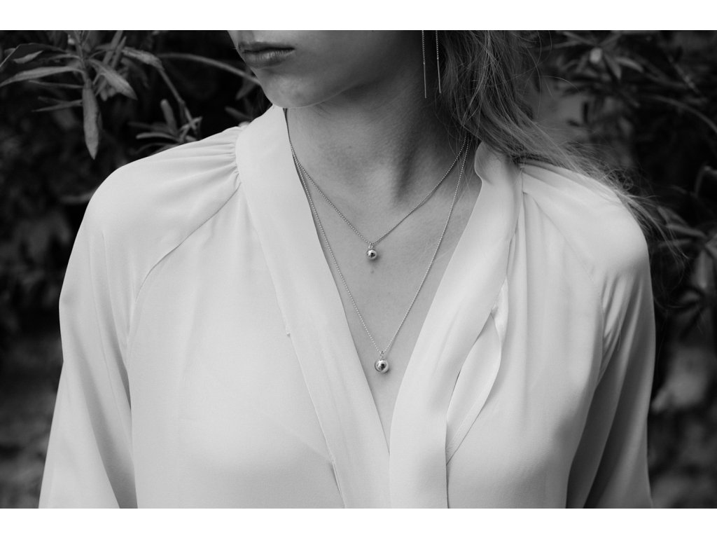 Řetízek MIKRODOTS s kuličkou DOT doplňuje kolekci šperků DOTS, která sestává z náramků, prstýnků a také nově náušnic DOT LONG.