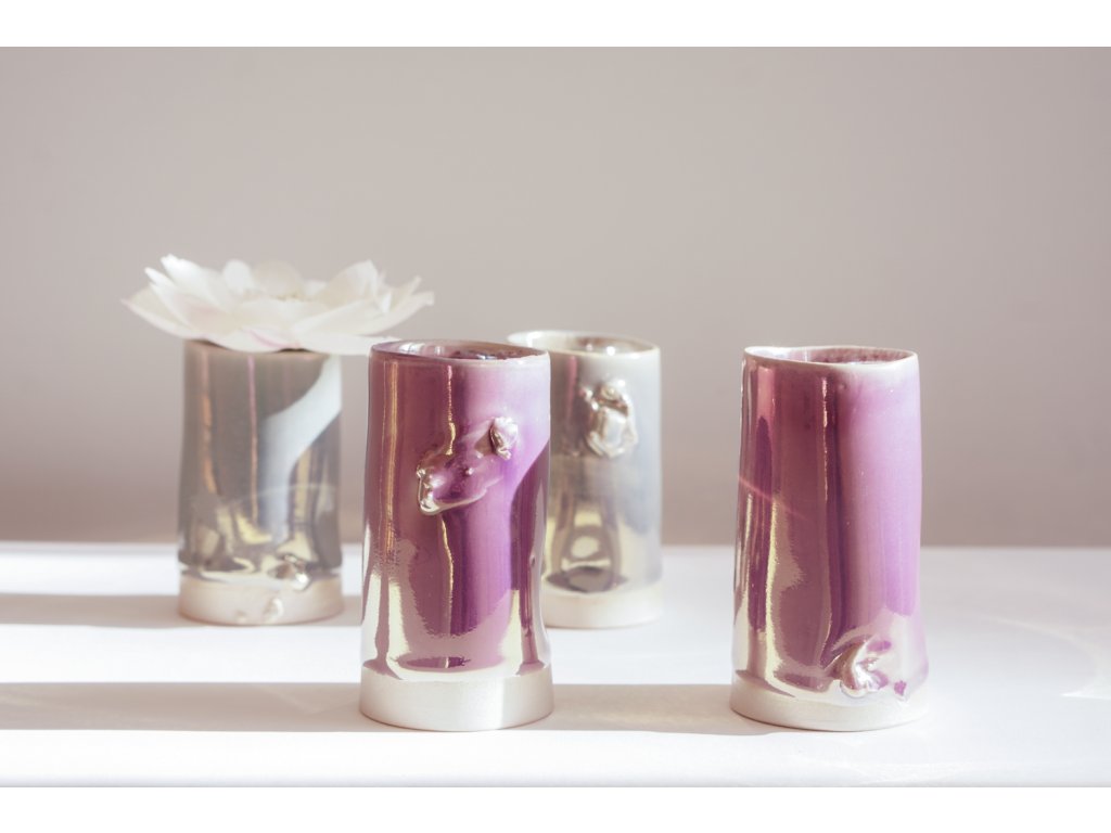 PANÁK - ESPRESSO šálek od Romana Šediny . je realizován jemným nástřikem porcelánové nebo keramické hmoty s použitím různých hustot a tlaku v tryskách. Povrch není zcela hladký, lze objevit malé kousky keramické hmoty. Unikátní technologie opakovaného vrstvení a vypalování dělá z každého šálku, vázy originál.